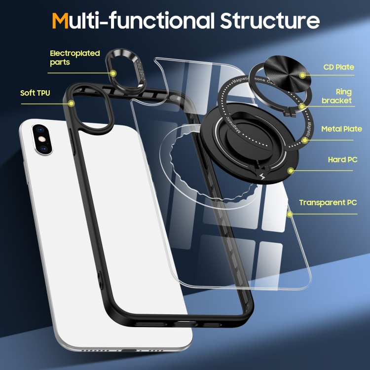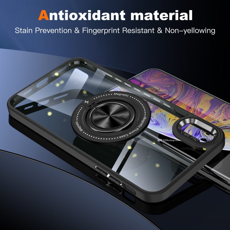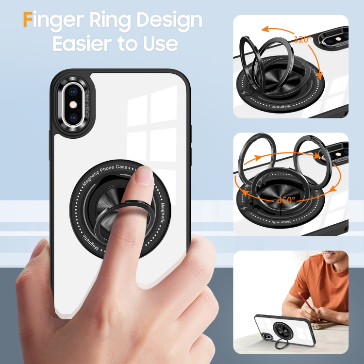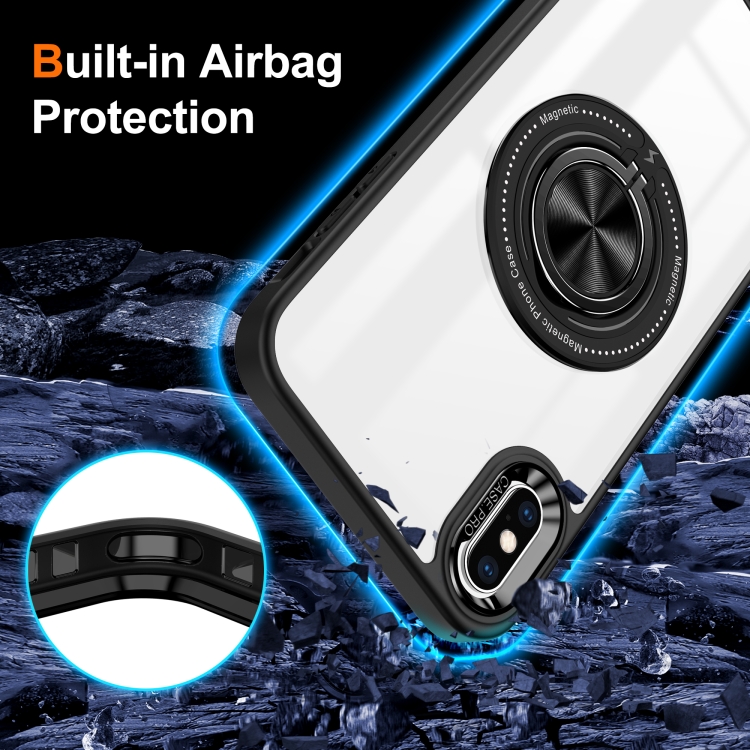 Funda para Teléfono iPhone Xr Soporte Anillo Giratorio Magnético (Negro)