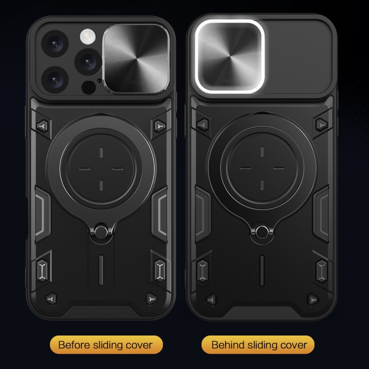 Funda para Teléfono iPhone 16 Pro Max Soporte Magnético Deslizante Textura de Cd (Negro)