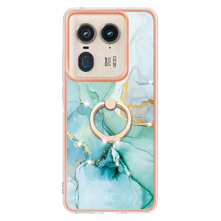 Funda para Teléfono Motorola Edge 50 Ultra con Soporte Anillo TPU Imd Mármol (Verde)