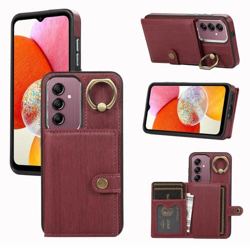 Funda para Teléfono Samsung Galaxy A14 4G / 5G Soporte Anillo Billetera (Rojo Oscuro)