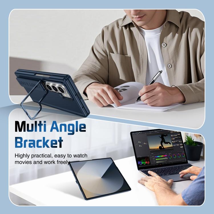 Funda para teléfono con soporte para lente integrada y correa para Samsung Galaxy Z Fold7 (azul oscuro)