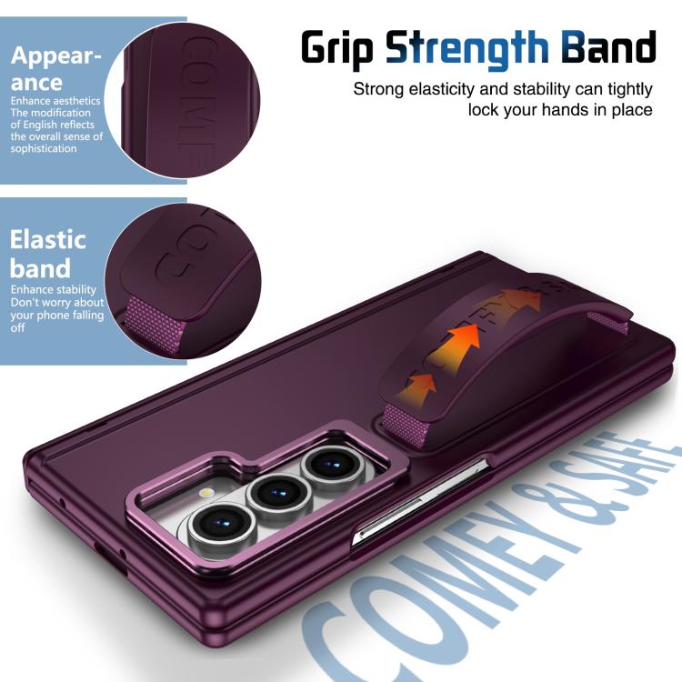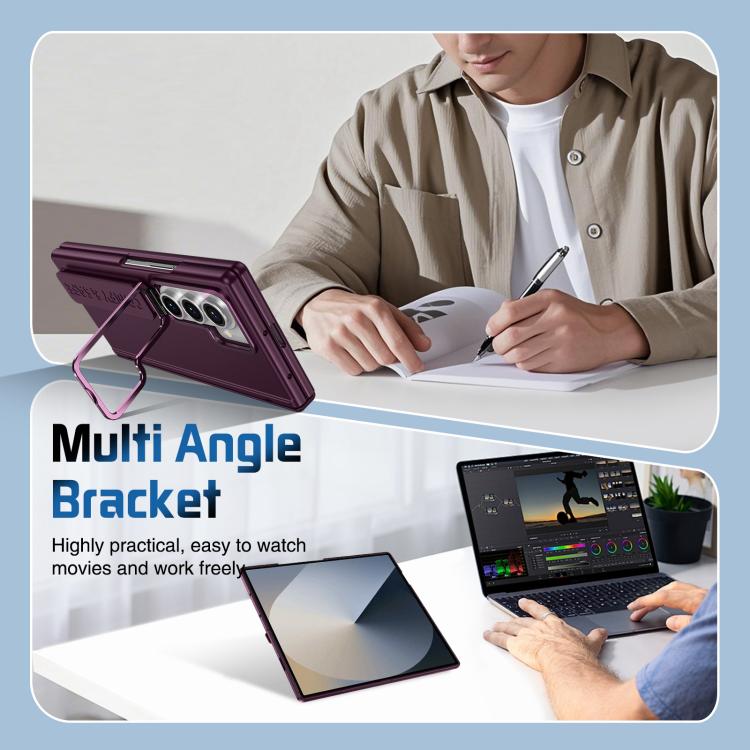 Funda para teléfono con soporte para lente integrada y correa para Samsung Galaxy Z Fold7 (rojo vino)