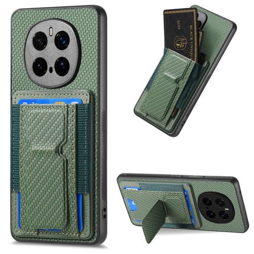 Funda para Teléfono Honor Magic7 Pro Soporte Plegable Fibra de Carbono Funda Elástica Tarjetas (Verde)