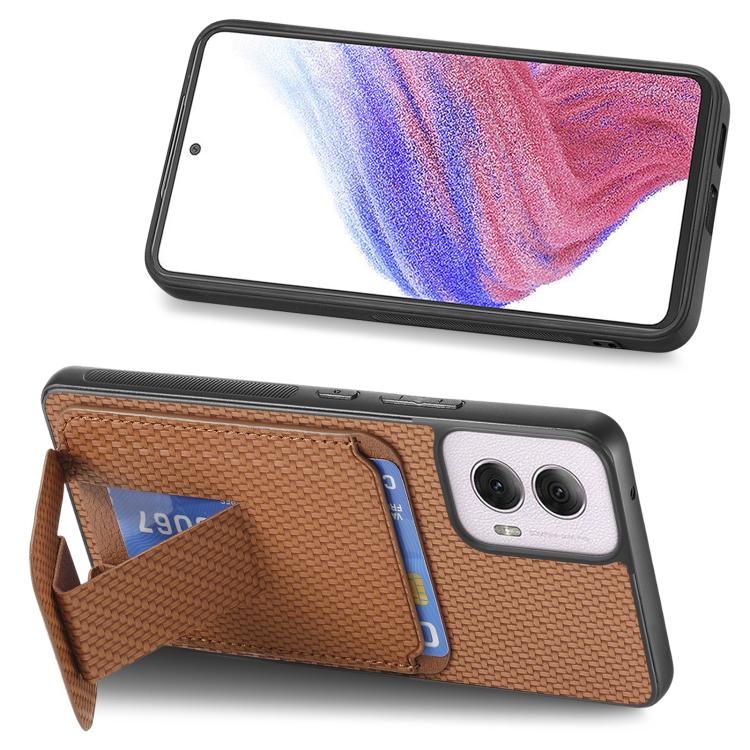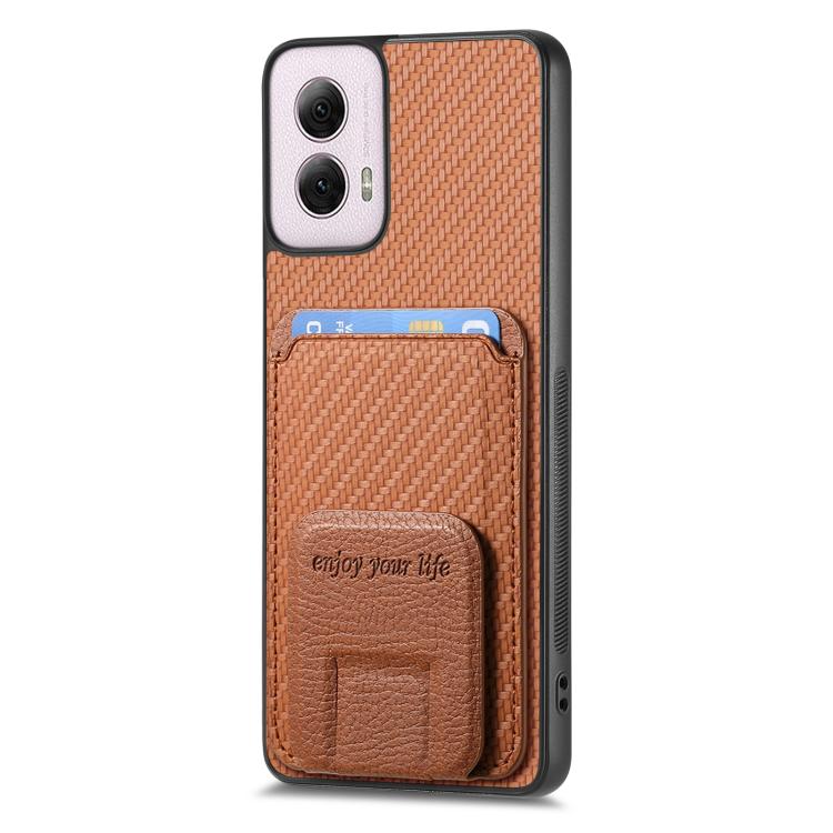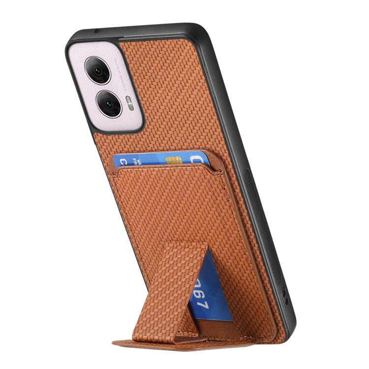 Funda para Teléfono Motorola Moto G Power 5G 2024 con Soporte Plegable y Tarjetero de Fibra de Carbono (Marrón)