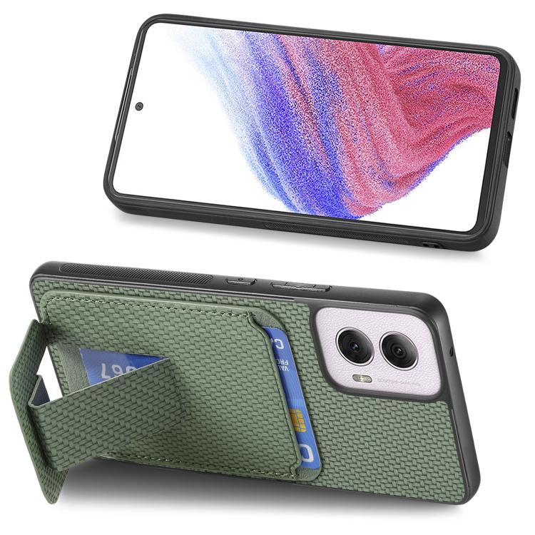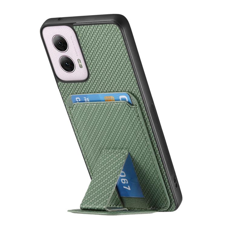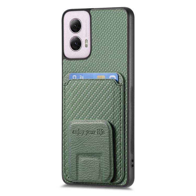 Funda para Teléfono Motorola Moto G Power 5G 2024 con Soporte Plegable y Tarjetero de Fibra de Carbono (Verde)