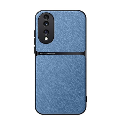 Funda para Teléfono Honor 70 con Tapa Magnética Cuero de Lichi a Prueba de Golpes (Azul)