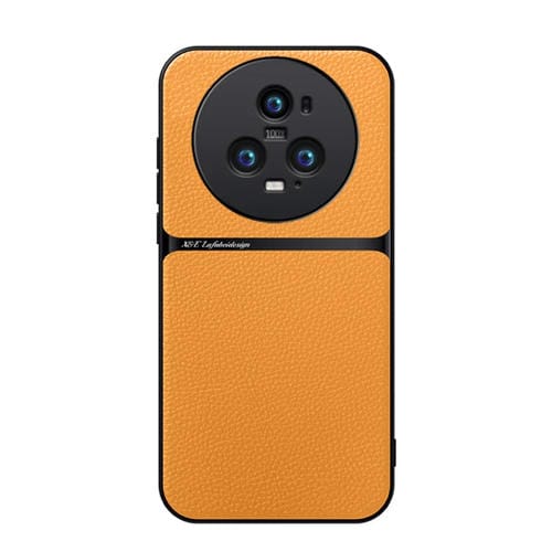 Funda para Teléfono Honor Magic5 Pro con Tapa Magnética de Cuero de Lichi y Protección Total (Amarillo)