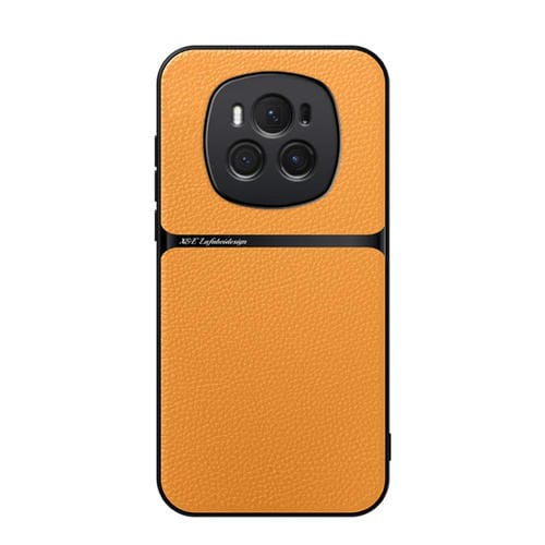 Funda para Teléfono Honor Magic6 con Tapa Magnética Cuero Litchi y Protección Total (Amarillo)