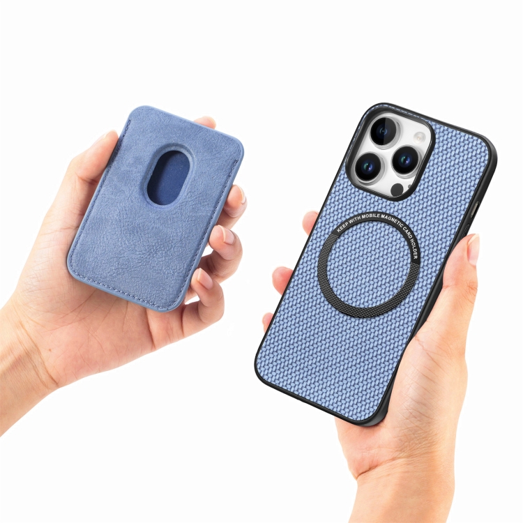 Funda para Teléfono con Tarjetero Cuero Fibra de Carbono Magsafe iPhone 16 Pro Max (Azul)