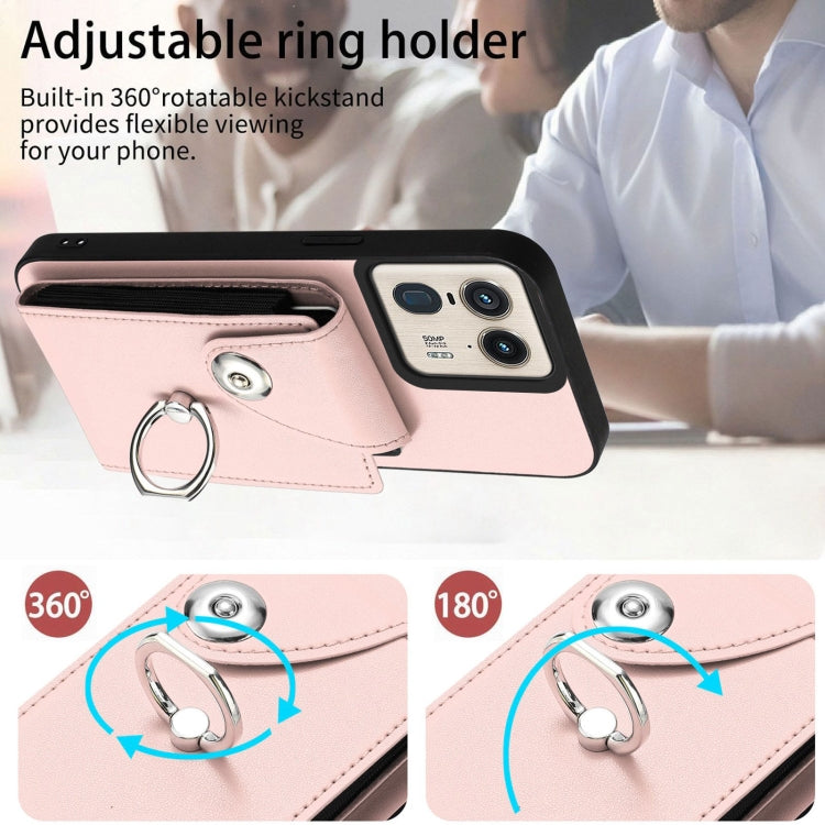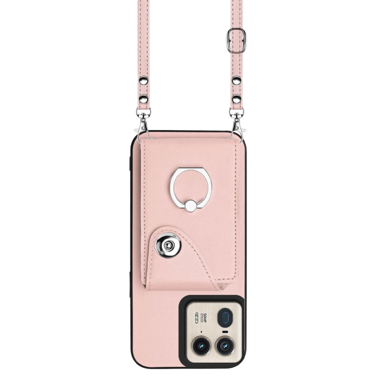 Funda para Teléfono Motorola Moto X50 Ultra con Tarjetero, Anilla y Cordón Largo (Rosa)