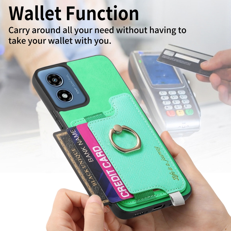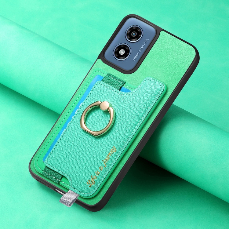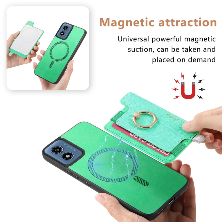 Funda para Teléfono Motorola Moto G Play 2024 4G con Tarjetero Anillo Cuero Diseño Retro Magsafe (Verde)