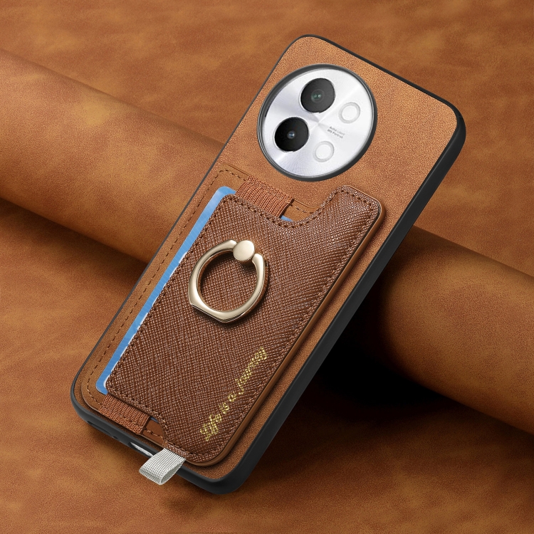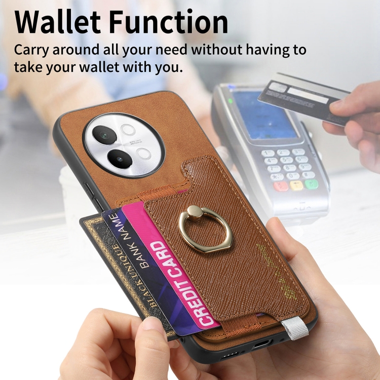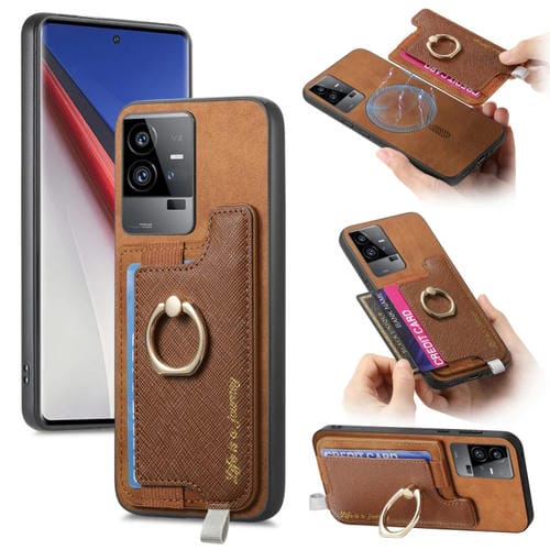 Funda para Teléfono con TaRJetero y Anillo de Cuero con Diseño Retro Magsafe Cross para Vivo Iqoo 11 Pro 5G (Marrón)
