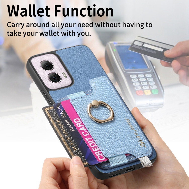Funda para Teléfono Motorola Moto G Power 2024 5G con Tarjetero Anillo Cuero Diseño Retro (Azul)