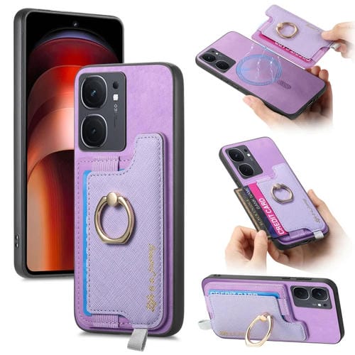 Funda para Teléfono con TaRJetero y Anillo de Cuero con Diseño Retro Magsafe para Vivo Iqoo Neo9/Neo9 Pro 5G (Morado)