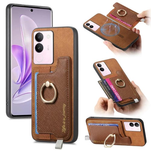 Funda para Teléfono con TaRJetero y Anillo de Cuero con Diseño Retro Magsafe para Vivo S17/S17 Pro/V29 Pro 5G (Marrón)