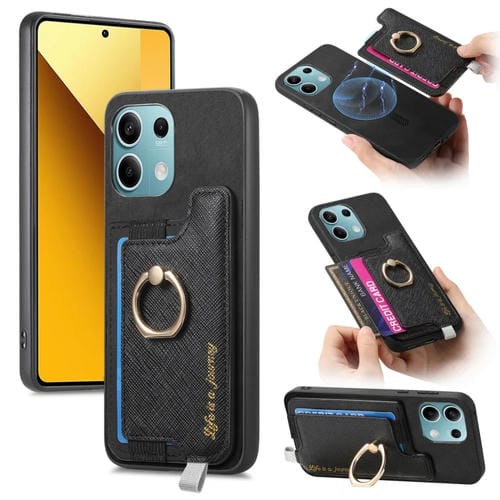 Funda para Teléfono con TaRJetero y Anillo de Cuero con Diseño Retro Magsafe para Xiaomi Redmi Note 13 5G (Negro)