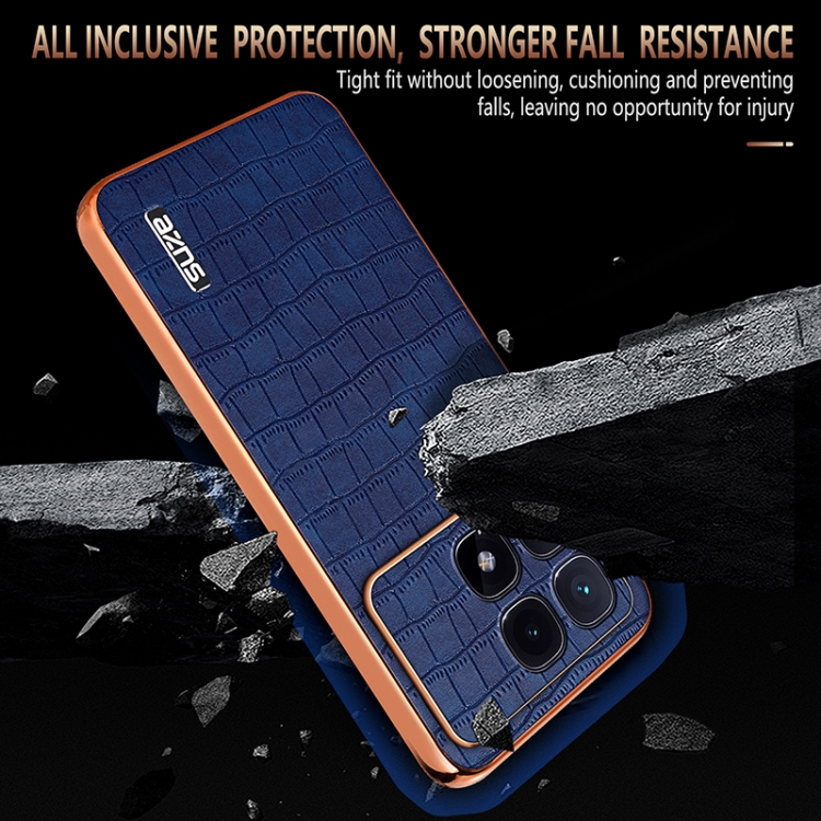 Funda para Teléfono con Textura de Cocodrilo y Marco Galvanizado Azns para Redmi K70 Ultra (Marrón)