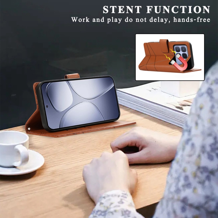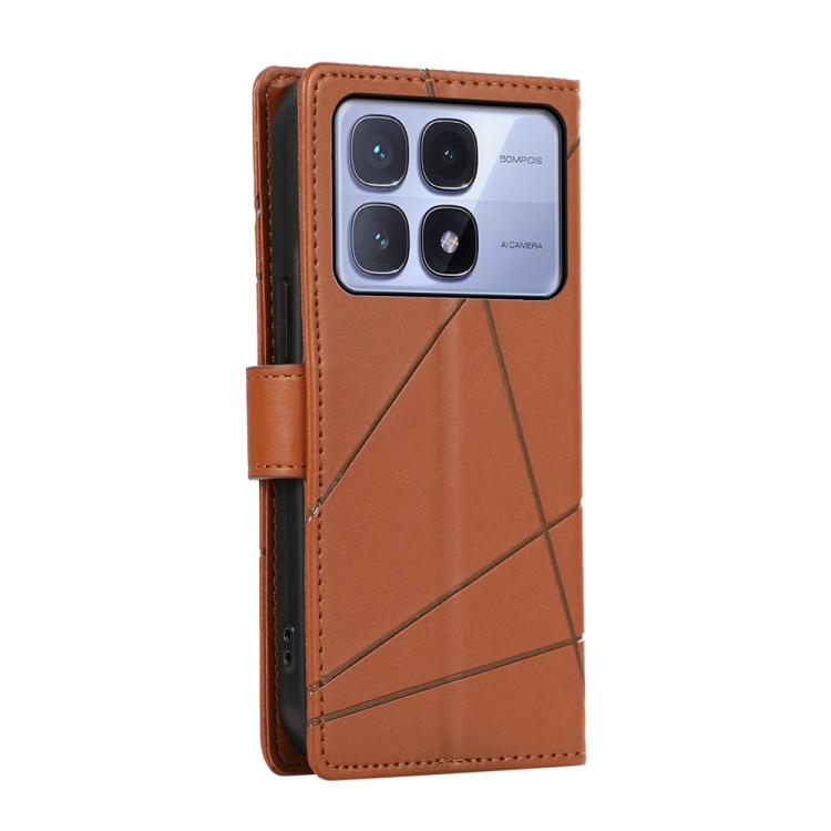 Funda para Teléfono con Textura de Cuero Genuino Pu con Líneas En Relieve para Redmi K70 Ultra (Marrón)