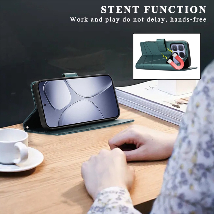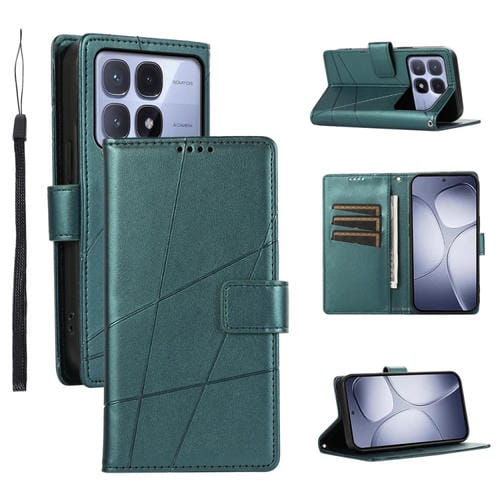 Funda para Teléfono con Textura de Cuero Genuino Pu con Líneas En Relieve para Redmi K70 Ultra (Verde)