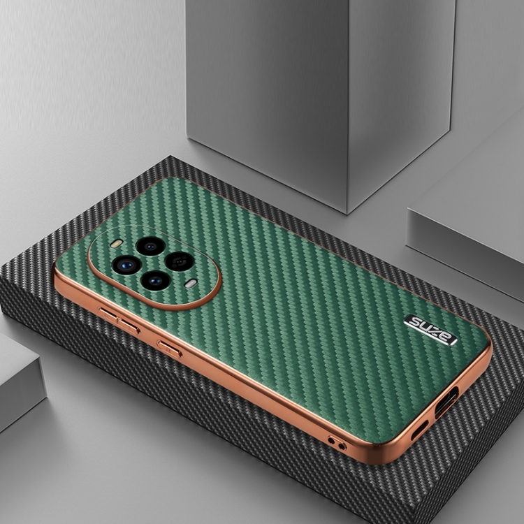 Funda para Teléfono Azns Huawei Nova 13 Pro Textura Fibra de Carbono Borde Galvanizado (Verde)