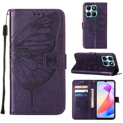 Funda para Teléfono Honor X6A de Cuero con Mariposa en Relieve (Púrpura Oscuro)