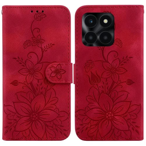 Funda para Teléfono Honor X6A Cuero con Relieve Lily (Rojo)