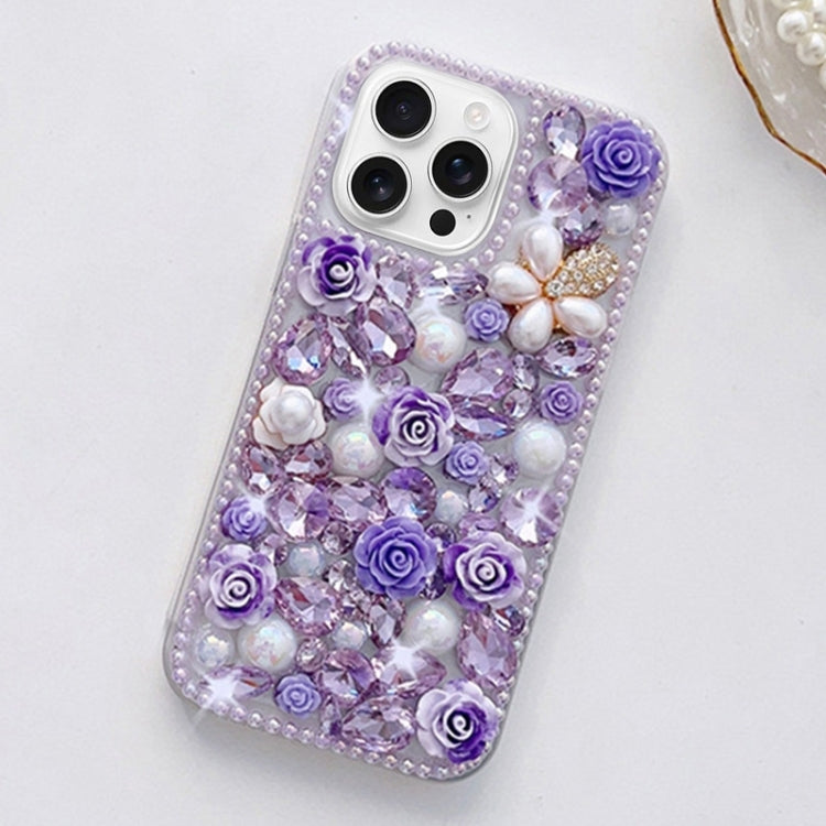 Funda para Teléfono PC con Diamantes Engastados a Mano para iPhone 16 Pro (Morada)