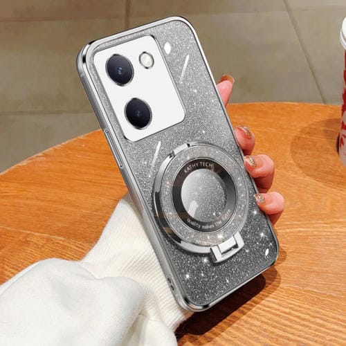 Funda para Teléfono de TPU con Soporte Redondo y Purpurina Degradada Plateada para Vivo Y100 5G (Plateada)
