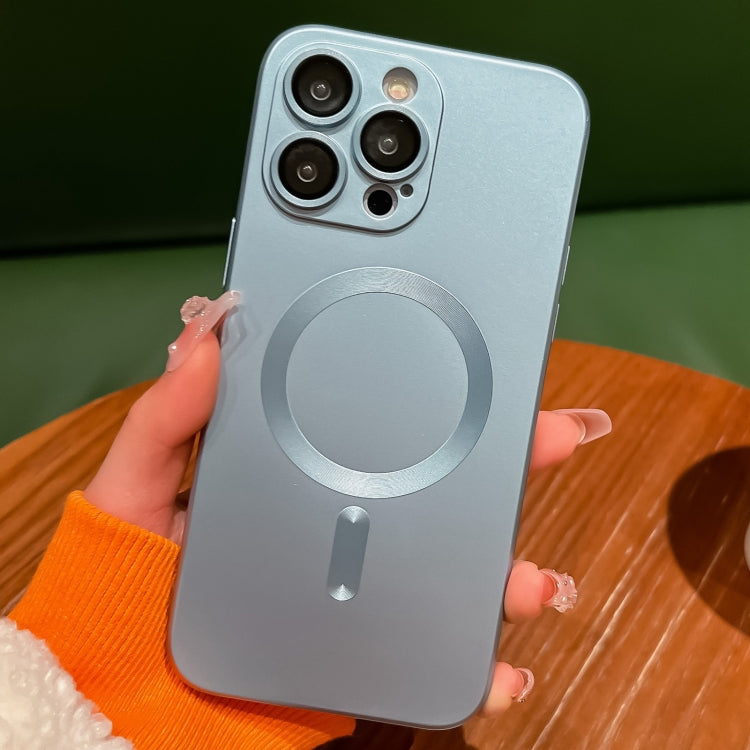 Funda para Teléfono TPU Líquido Magsafe con Pintura Metalizada para iPhone 16 Pro Max (Azul)