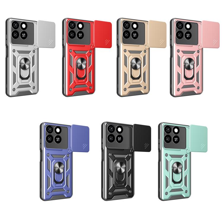 Funda para Teléfono TPU+PC ZTE Blade A35 4G A55 4G Cubierta Deslizante Cámara (Plateada)