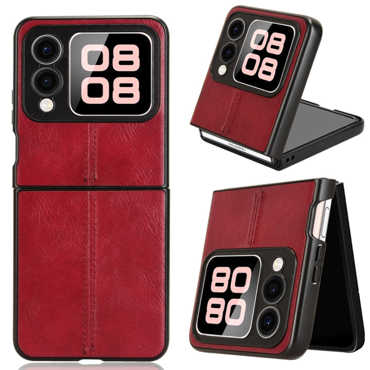 Funda para Teléfono Huawei Nova Flip con Estampado de Vaca y Costura Posterior (Roja)