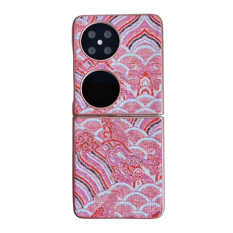 Funda para Teléfono Huawei Pocket 2 con Bordado de Nubes Propicias y Cobertura Total (Roja)