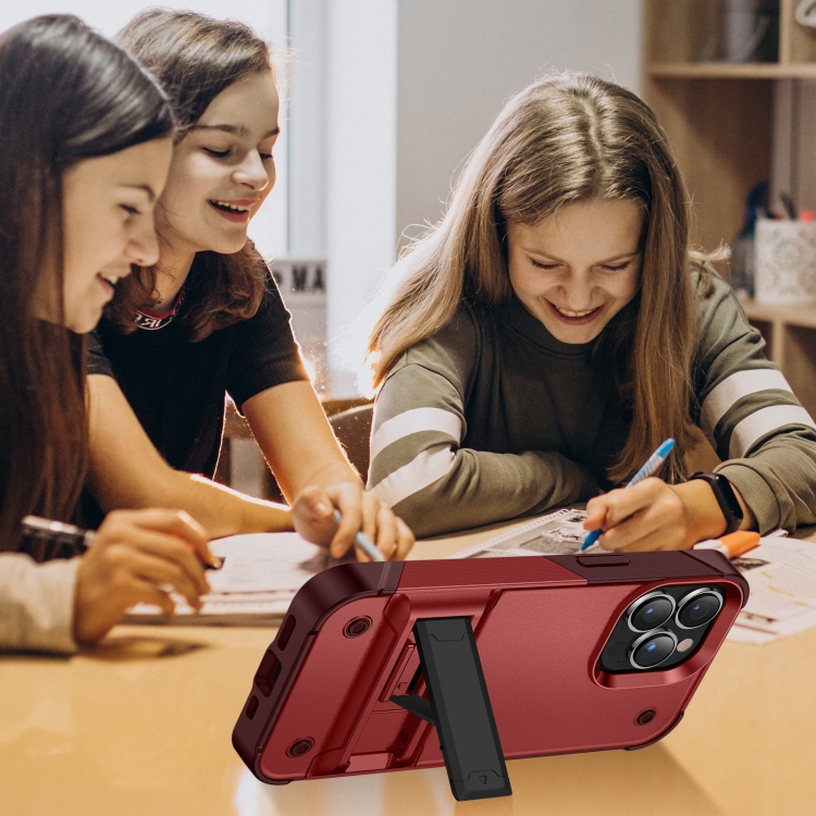 Funda para Teléfono PC TPU con Soporte para iPhone 14 Max (Rojo + Rojo Oscuro)