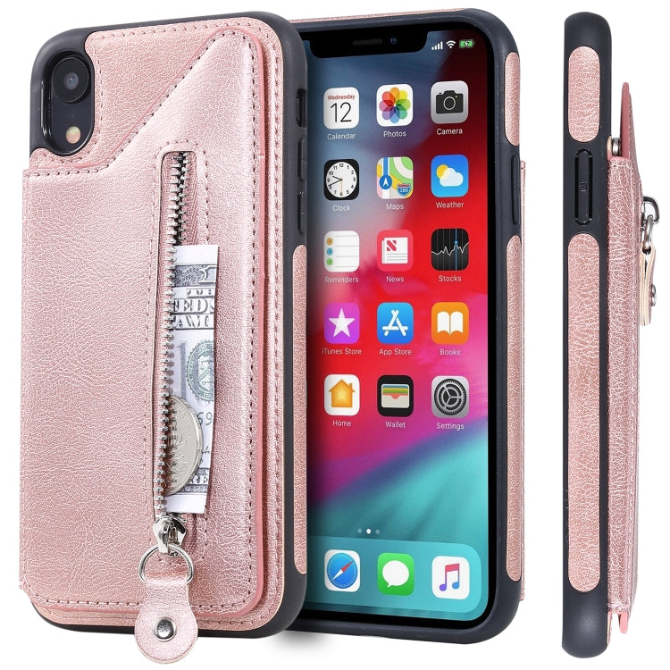 Funda Protectora para iPhone Xr a Prueba de Golpes con Cremallera y Doble Hebilla (Oro Rosa)
