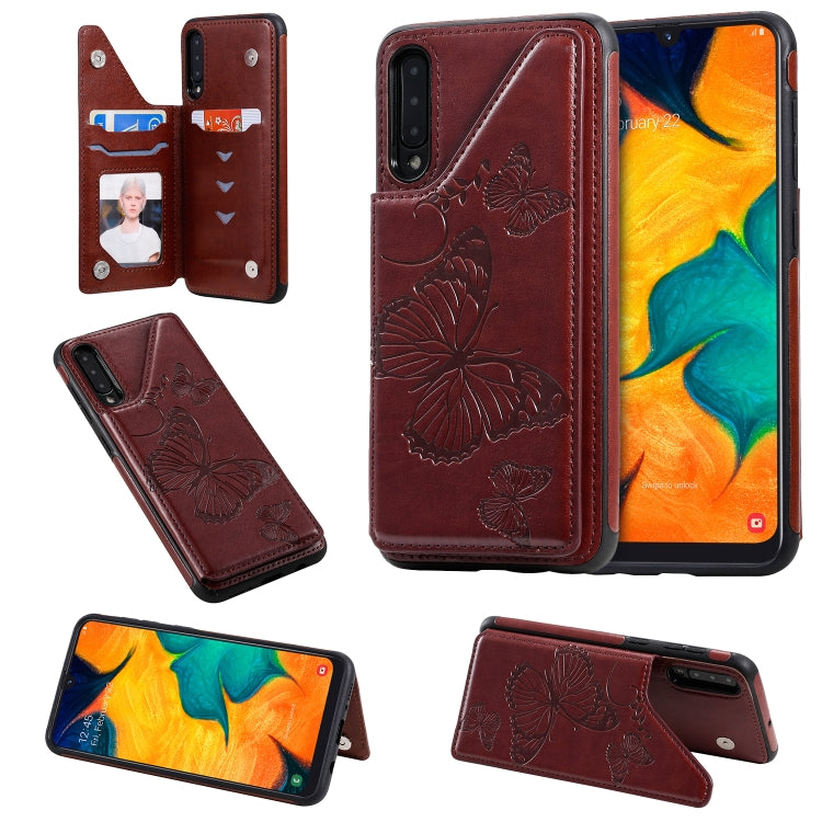 Funda Protectora Galaxy A50 Estampado Mariposa Soporte Ranuras Tarjetas Marco Fotos (Marrón)
