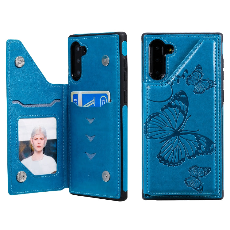 Étui de protection antichoc à motif imprimé papillon Galaxy Note10 avec support, emplacements pour cartes et cadre photo (bleu)