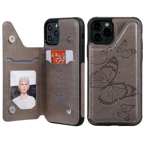 Funda Protectora para iPhone 11 Pro con Soporte, Ranuras para Tarjetas y Marco de Fotos (Gris)
