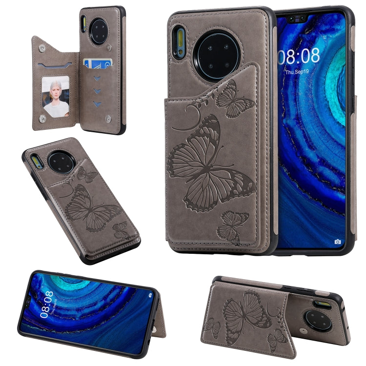Funda Protectora Huawei Mate30 Patrón Relieve Mariposa Soporte Ranuras Tarjetas Marco Fotos (Gris)