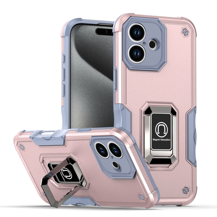 Funda Protectora para iPhone 16 Soporte de Anillo Antideslizante a Prueba de Golpes (Oro Rosa)