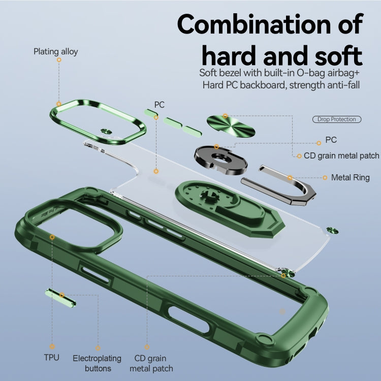 Funda Protectora de Lente TPU + PC para iPhone 16 Pro Max con Soporte de Anillo (Verde)
