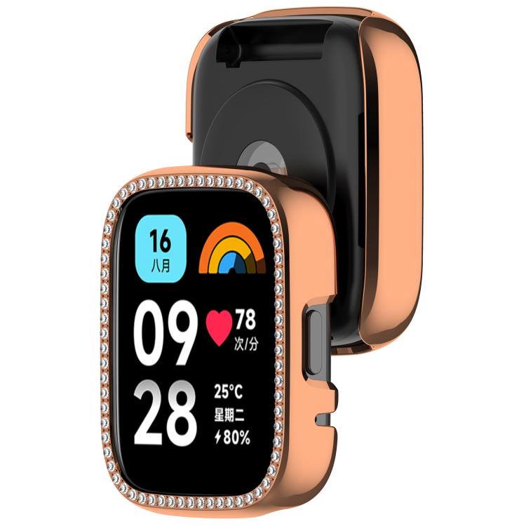 Funda protectora de PC hueca con media cobertura y una sola fila de diamantes para Redmi Watch 3/Watch 3 Lite (oro rosa)