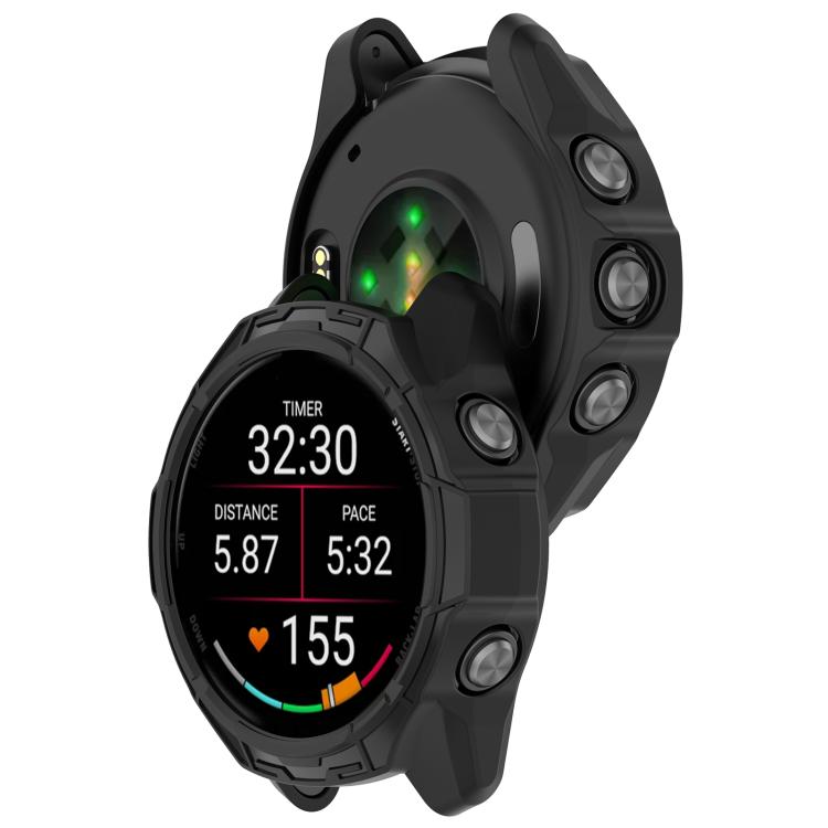 Funda protectora de TPU de media cobertura para Garmin Forerunner 970 Hollow Armor (negra)