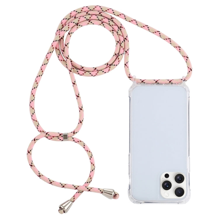 Funda Protectora Teléfono iPhone 16 Pro Max Bolsa de Aire Acrílico Transparente con Cordón (Café Albaricoque Rosa)