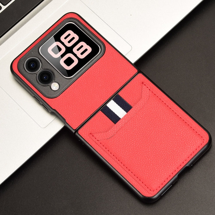 Funda Trasera Huawei Nova Flip con Ranuras para Tarjetas y Textura de Lichi (Roja)
