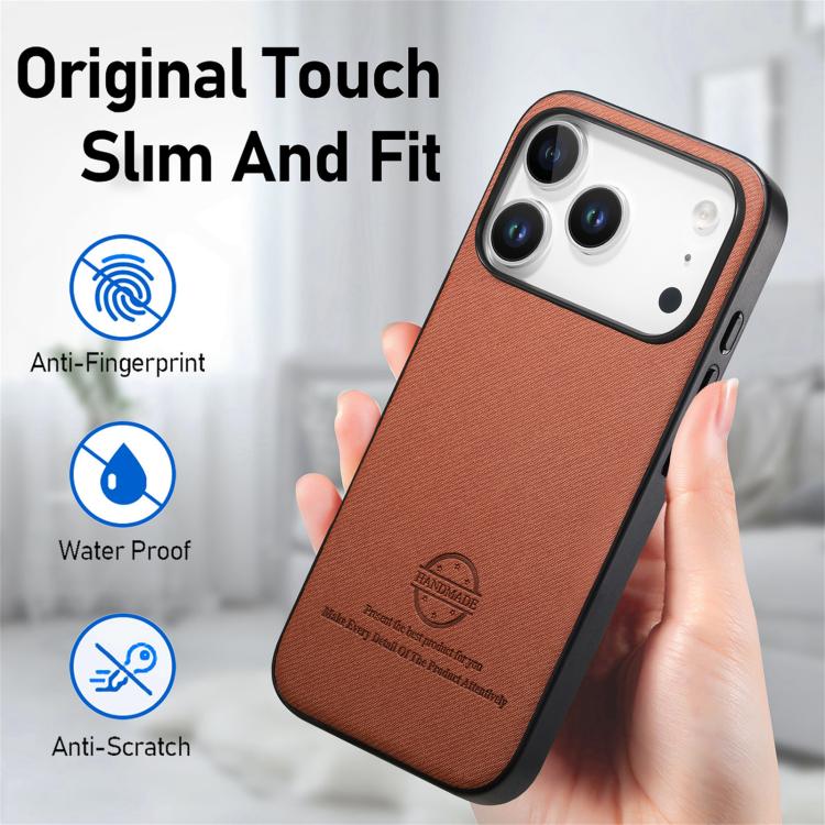 Funda trasera de piel y sarga para iPhone 17 Pro Max (marrón)