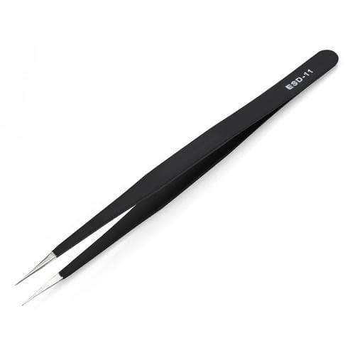 • Incluye 6 tipos de pinzas: ESD-10 (estándar), ESD-11 (punta fina), ESD-12 (alta fuerza elástica), ESD-13 (cabeza redonda), ESD-14 (ultrafina, 12 cm), ESD-15 (punta de águila doblada)