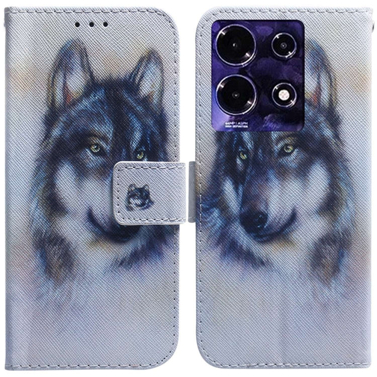 Estuche para Infinix Note 30I de Cuero con Tapa y Dibujo Coloreado (Lobo Blanco)