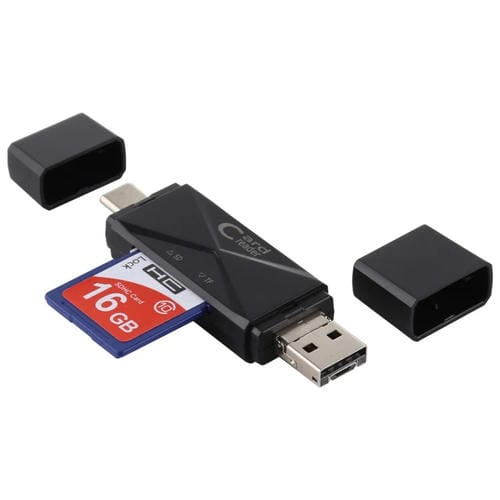 - 1x Lector de Tarjetas USB-C Type-C + SD + TF + Micro USB a USB 2.0 (Negro)