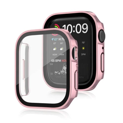 Marco de PC + Estuche Protector de Vidrio Templado Life Waterproof para Apple Watch Series 6/5/4/SE 44mm (Rosa)