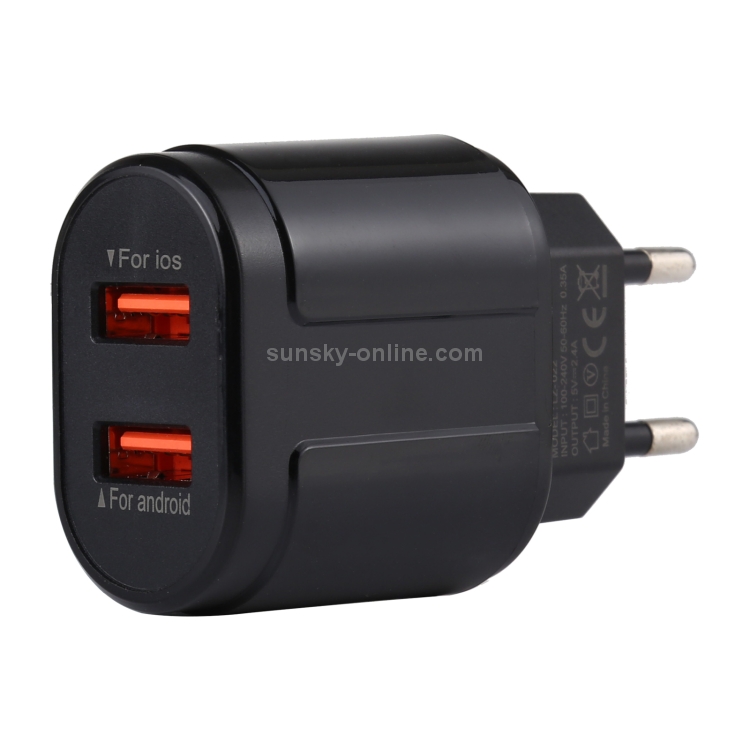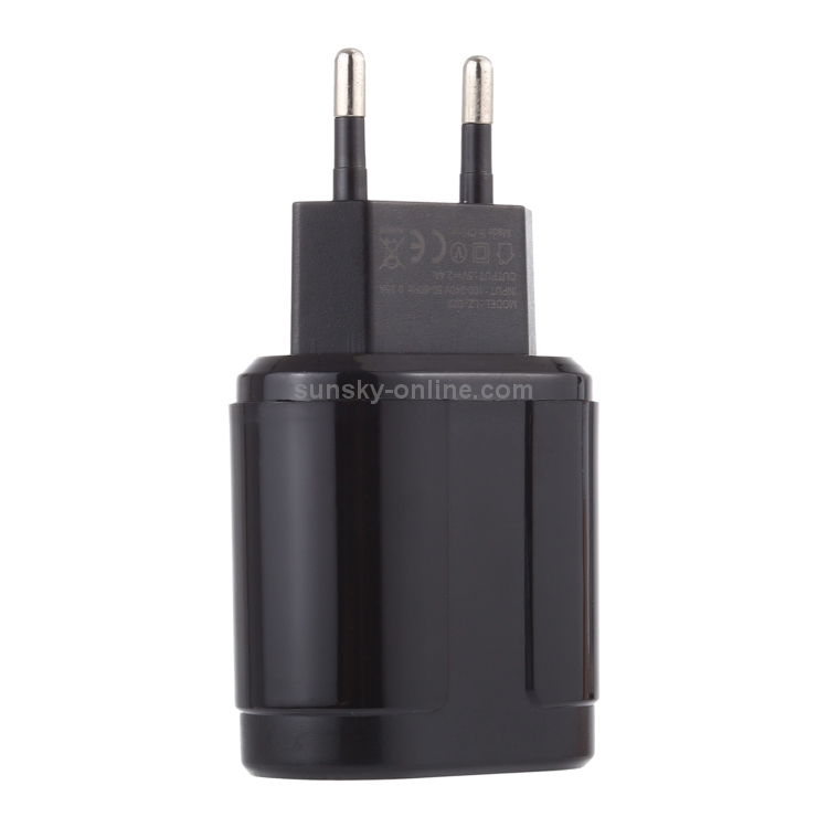 Cargador de viaje Lz-022 5V 2.4A con puertos USB dobles y enchufe de la UE (Negro)